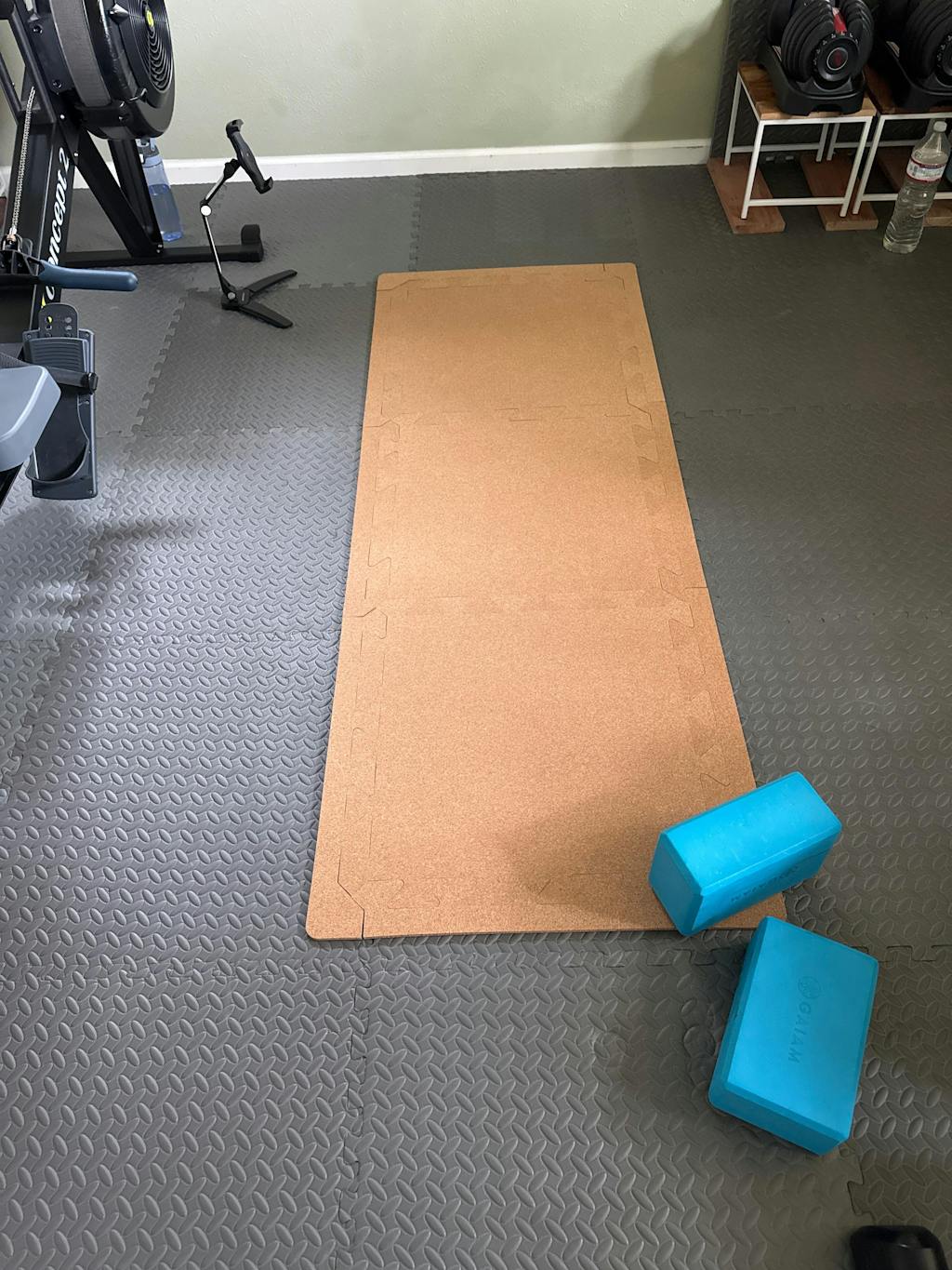 Made from premium 6mm triple-layer solid cork for a long-lasting, stable, sustainable, and safe surface. Designed to handle gym equipment like bikes, weights, and more. No chemicals or artificial materials are added for a clean and non-toxic surface. Easily expandable to grow with your space.