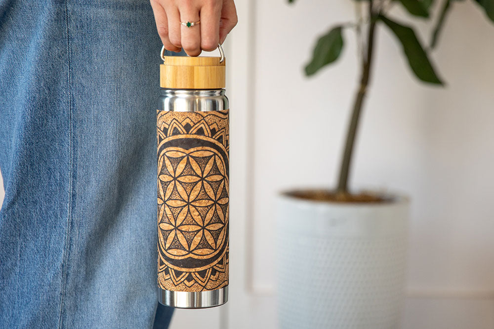 Extra durable double-walled stainless steel means your bottle won't "sweat". Natural cork exterior is easy to grip on the go.
