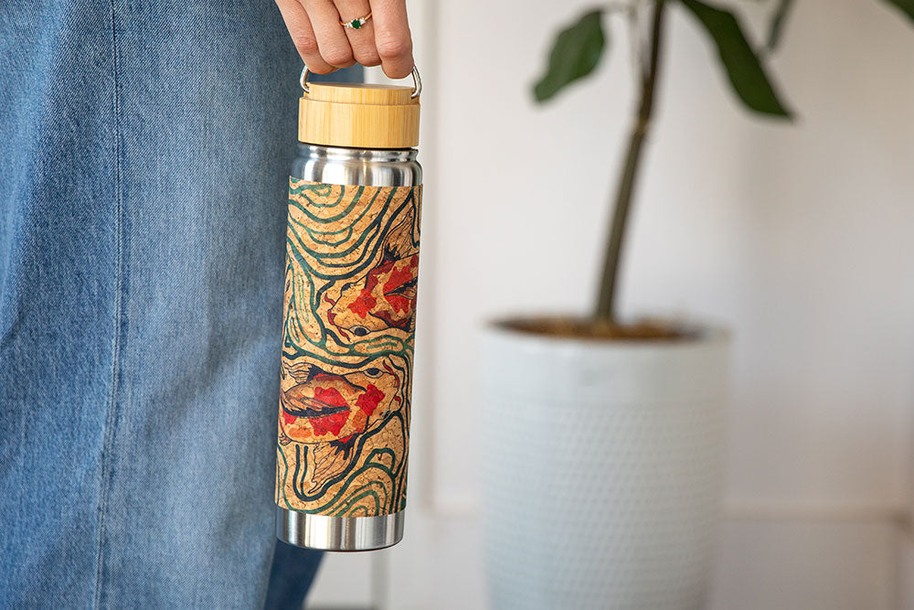 Extra durable double-walled stainless steel means your bottle won't "sweat". Natural cork exterior is easy to grip on the go.