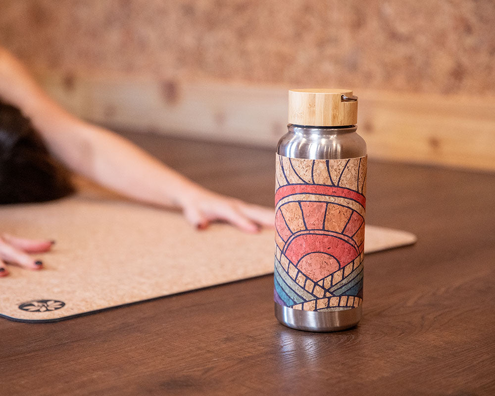 Extra durable double-walled stainless steel means your bottle won't "sweat". Natural cork exterior is easy to grip on the go.