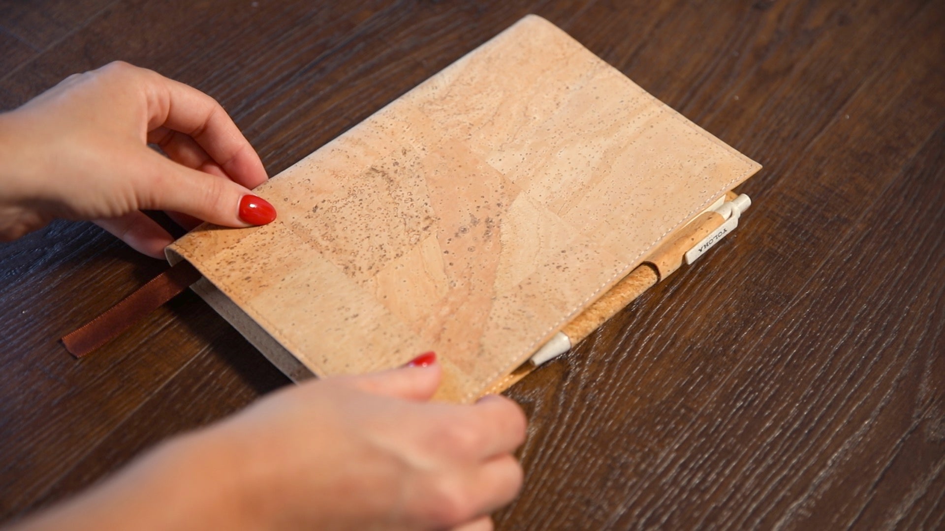 Discover the sustainable and durable Refillable Cork Journal Book. Made from natural cork, it features 2 card holders, a divider ribbon, and a cork grip pen made from wheat pulp for on-the-go convenience. Includes a 100-page A5-sized refill book with blank or dot-matrix pages. Travel-ready and environmentally friendly, this journal is a must-have for any passionate journaler.