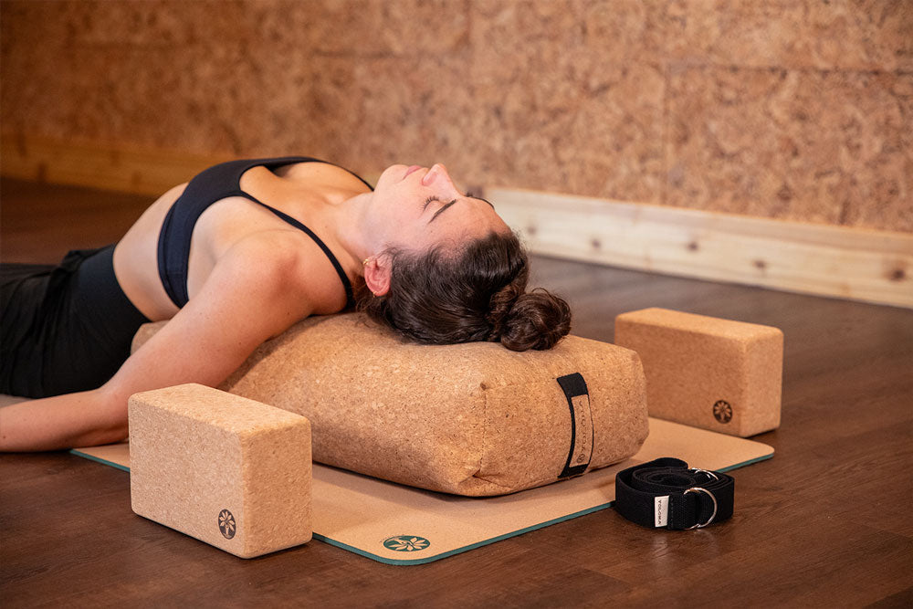 Our premium cork bolster is handmade from sustainable cork fabric and recycled cork filler. Cork provides a warm, soft, lightweight cushion which contours nicely to your body. Naturally resists odors and mold. Double-stitched with care for long-lasting comfort and lightweight for mindfulness on the go.