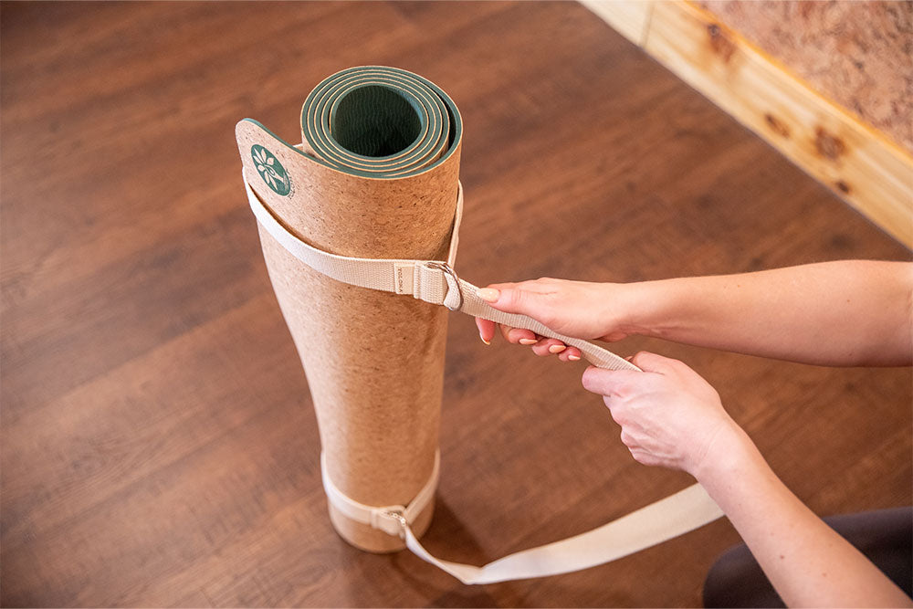 This Natural Sling and Mat Strap is a must-have accessory for your yoga mat. Handmade using natural cotton, this USA-made strap is both durable and multi-functional. It can be used as both a carrying tool for your yoga mat and a stretching tool, with dual d-rings locking the mat in place and preventing it from being pinched during stretching.